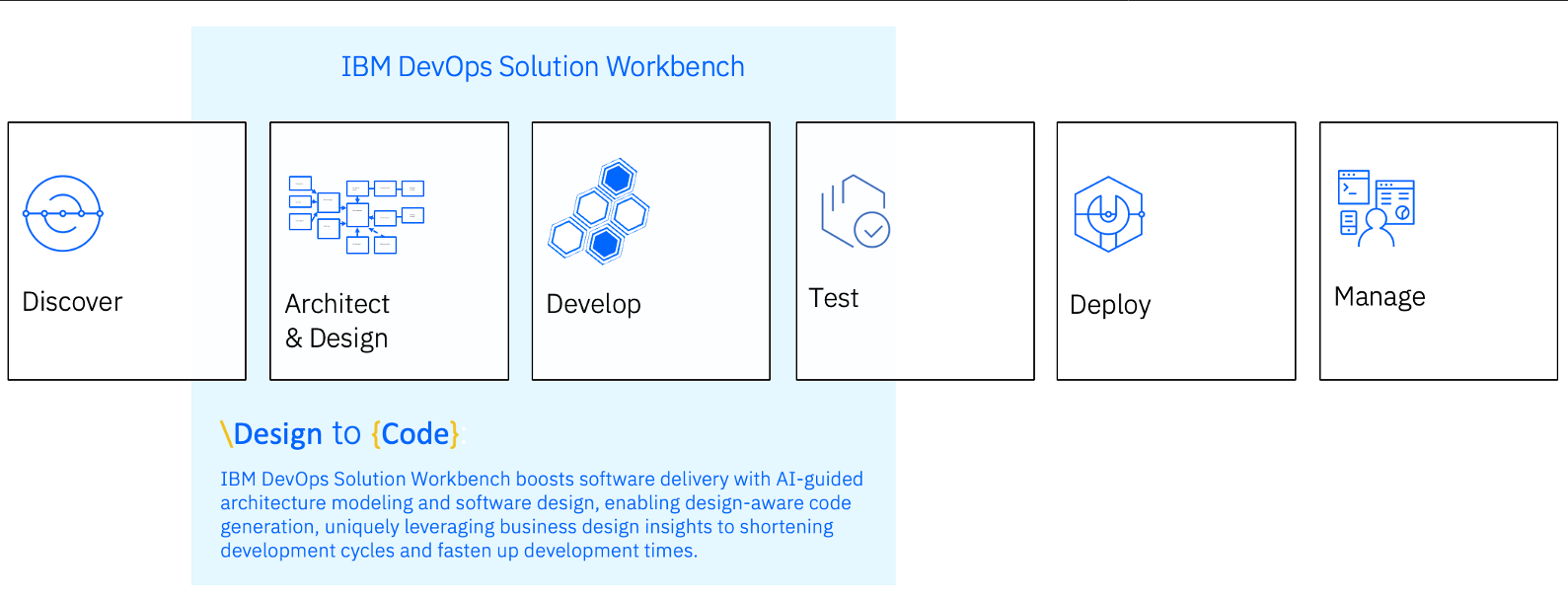 The IBM DevOps Solution Workbench combines several tools to cover the entire software development lifecycle from architecture to code to deployment. You will encounter most of them in this exercise:
